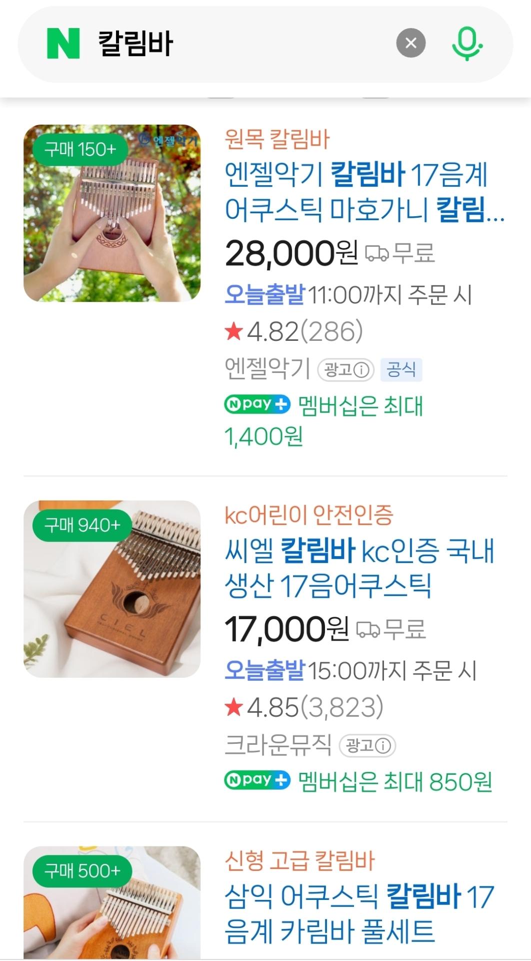 칼림바 어떠하신가요? 칼림바는 가격도 저렴한 편이고요~ 칼림바 검색해서 뜬 화면이예요~
