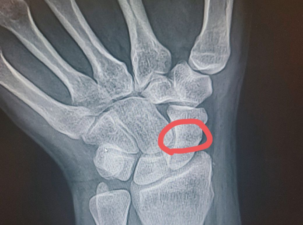 질문하신 내용에 대하여 아래와 같이 답변 드립니다.엑스레이상 실금처럼 보여지는 음영이 관찰되기는 하나 이것만으로는 정확한 진단을 내릴 수는 없을 듯합니다. 정확한 판단을 위해 CT 촬영이 필요한 상황으로 보여집니다. 골절의 여부에 따라 치료방침이 크게 달라지는 부분이오니 가능한 진단을 받으시는 것이 좋을 듯합니다.