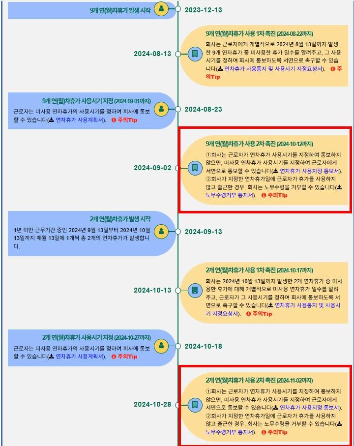 입사 1년 미만자 연차촉진 일자 및 방법
