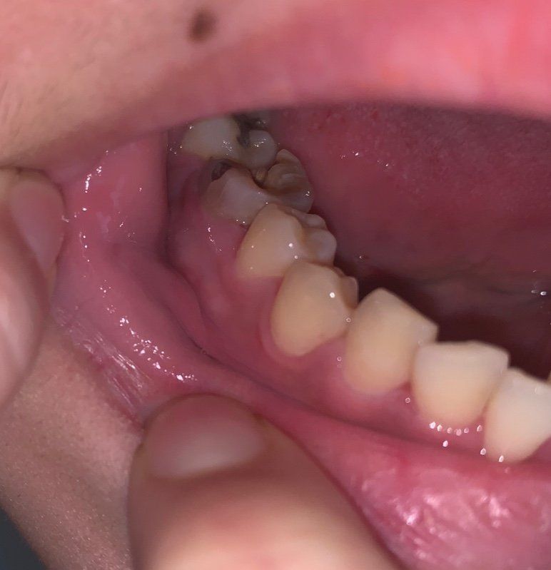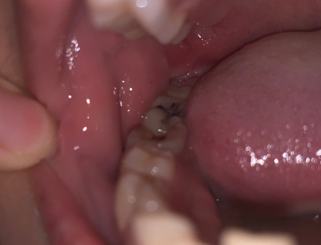 사진으로만 봤을 경우에도 우측 하악 1대구치의 치질의 손상이 많이 되어 있는 것으로 보입니다.