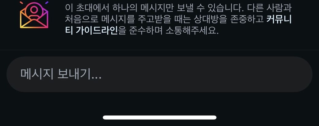 인스타 디엠을 누구에게 보내려고 하다가 당한? 마주한? 장면입니다. 첫번째 사진은 누군가에게 디엠을 보낼때 나오는 창으로서 문제가 안되는데, 두번째 사진은 처음 보는거라 심히 당황스럽습니다. 첫번째 사진 이후 2초 뒤에 두번째 사진으로 넘어가더라구요. 여기서 질문은, 2초 사이에 문자를 치고 보내기를 누르면, 두번째 사진으로 넘어가더라도 문자가 전송이 되나요? 참고로 팔로우를 해도 문자는 안 보내집니다..