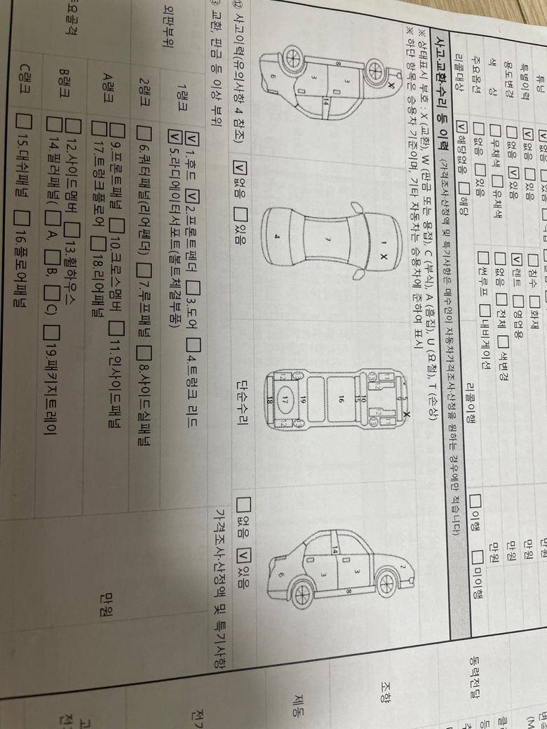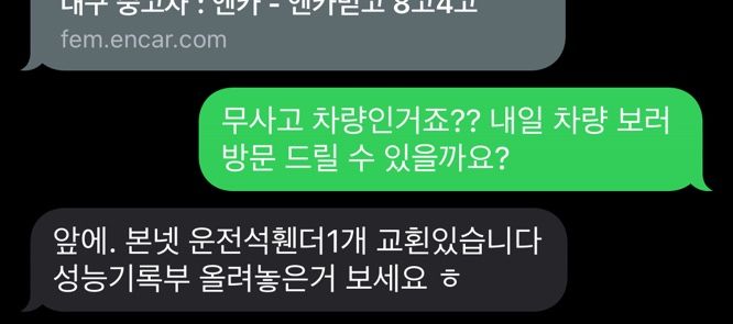 아래는 문자로 받은 답변, 계약금 넣기 전 받은 성능기록부, 자동차 365에서 검색한 내용들 입니다.