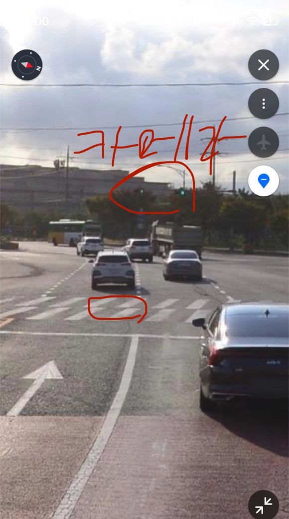 신호등에 빨간색 동그라미 해놓은 부분에 카메라가 있었고 저는 횡단보도 빨간색 동그라미 쳐진곳에 횡단보도 중간에 멈췄습니다. 지나가다 황색불이라 횡단보도 중간에 멈춰버렸는데 단속 될까요?