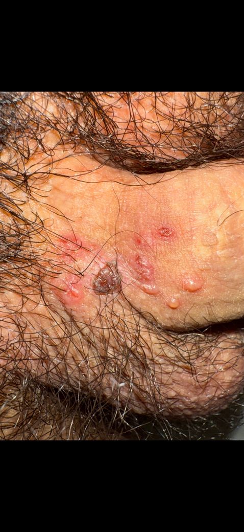 며칠전부터 성기 주변에 수포같은게 하나 생겼다가 더 생겼습니다 딱지쪽만 건드리면 약간 아프고 나머지부분들은