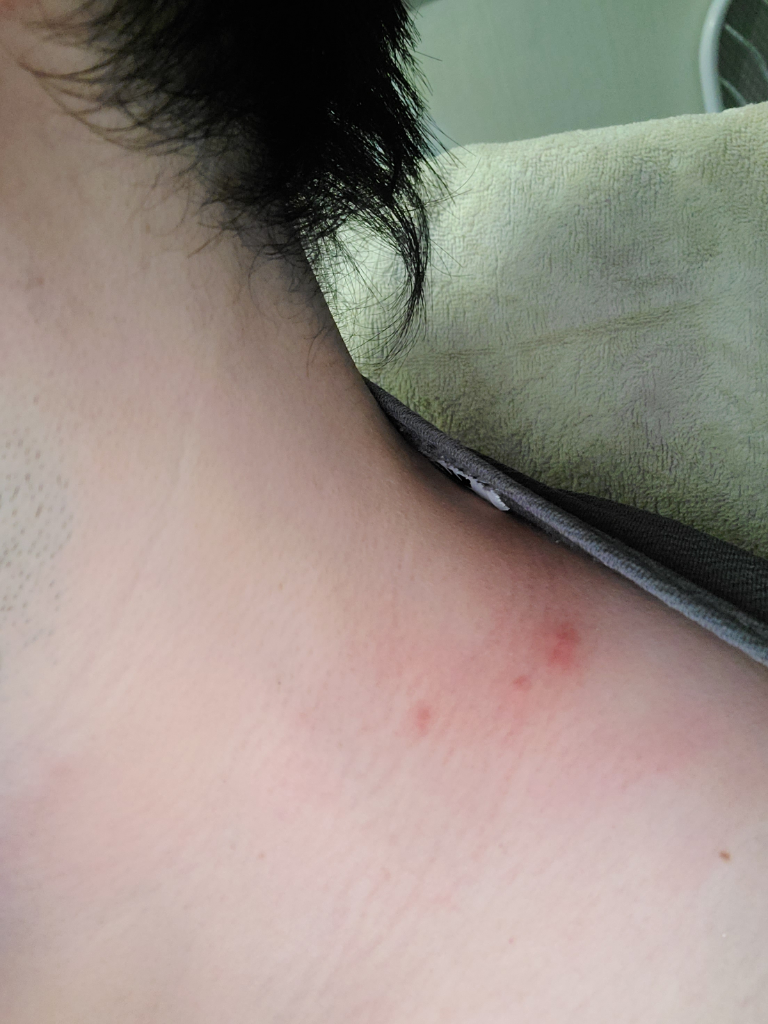 벌레에 물린 자국같아보이는데, 알레르기약을 복용하고 연고를 발라보시면 좋겠습니다. 효과가 없다면 피부과를 방문해보시기 바랍니다.
