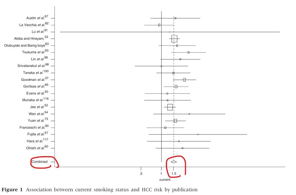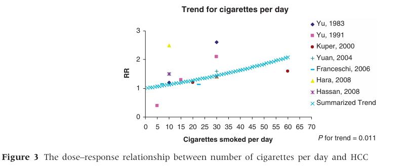 Meta-analysis of epidemiologic studies on cigarette smoking and liver cancer (International Journal of Epidemiology 2009;38:1497–1511) 해당자료에서 몇 가지 캡처하였습니다.