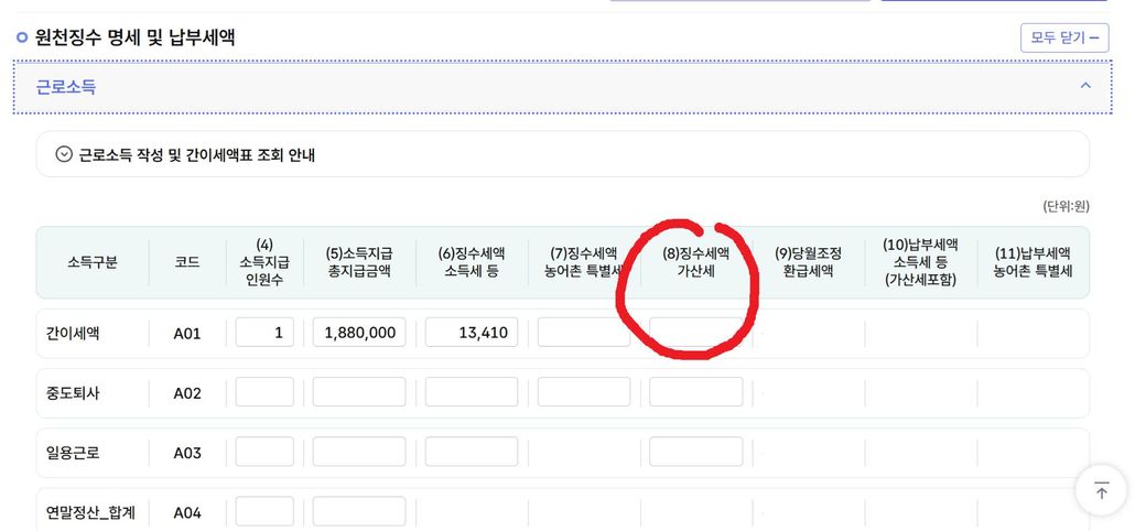 월급 188만원 줬는데 첨부이미지에 가산세는 얼마를 입력해야 하나요?