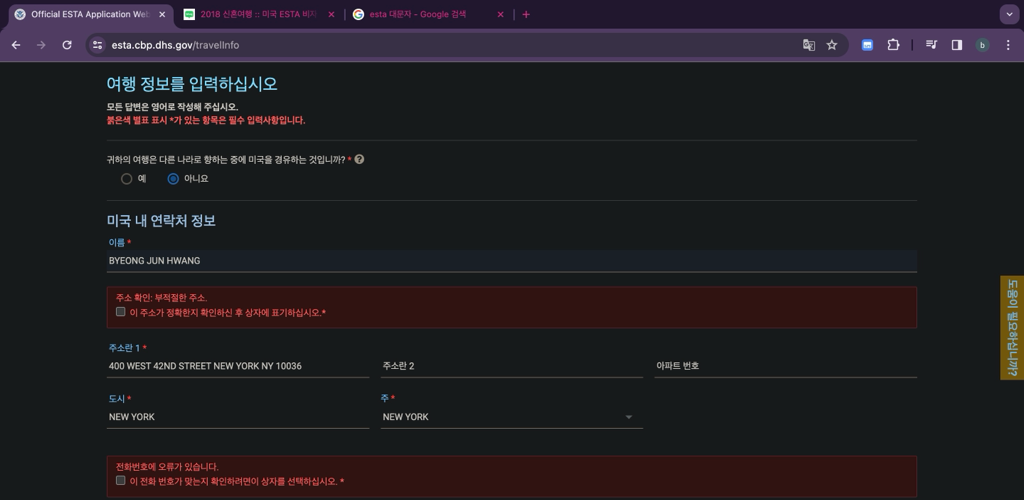 3. **개인 정보 입력**: 요구되는 개인 정보를 정확하게 입력합니다. 여권 정보, 여행 계획, 연락처 정보 등이 포함됩니다.