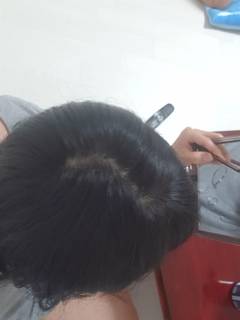 두피에서 관찰되는 모반은 육안으로 보기에 점의 경계나 색에 별다른 변화가 보이지 않는 것으로 판단됩니다. 크기가 눈에 띄게 커지거나 경계가 울퉁불퉁해지는 경우, 점의 색이 얼룩덜룩해보이거나 변하는 경우 등의 상황에서는 피부과 진료를 받아보시면 되겠습니다.