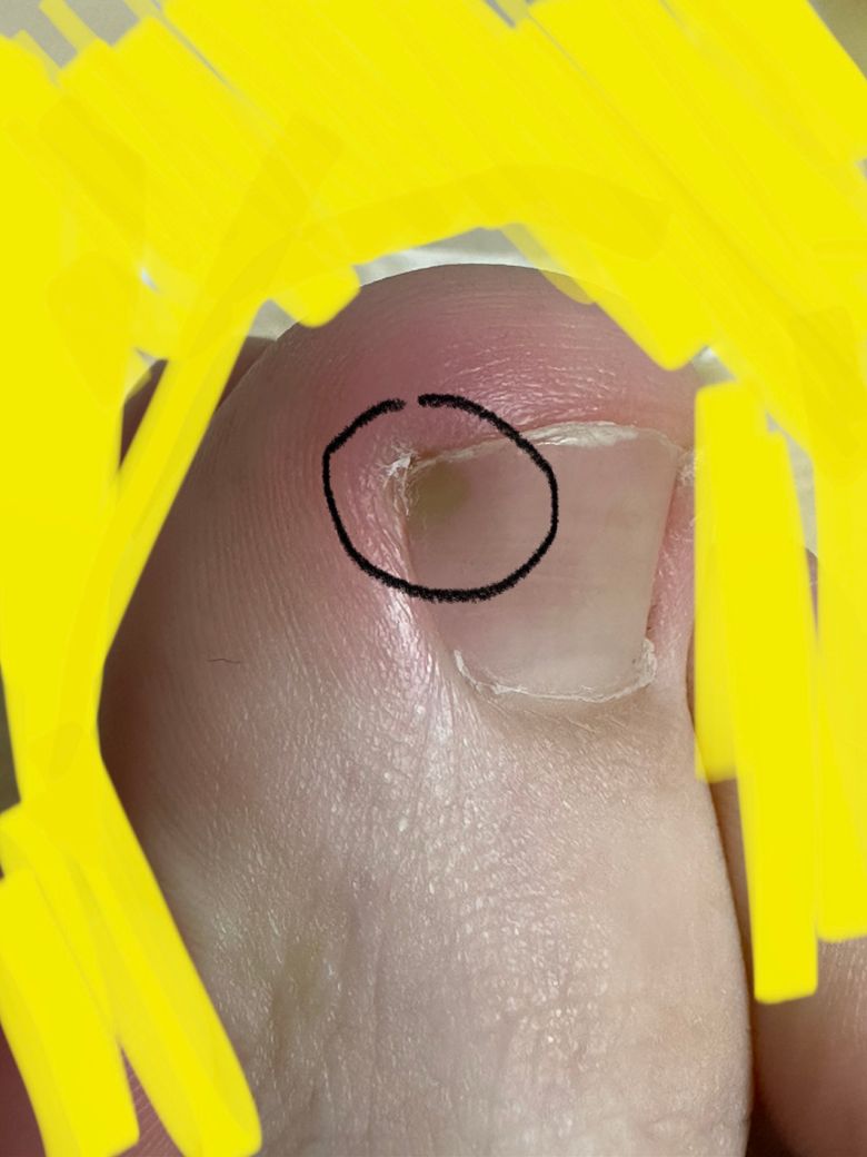 며칠 전 통증이 조금씩 느껴지더니 오늘 보니까 발톱에 노란 멍같은게 생겼습니다.. 이거 내성발톱이나 무좀 같은 건가요..?ㅠㅠ...