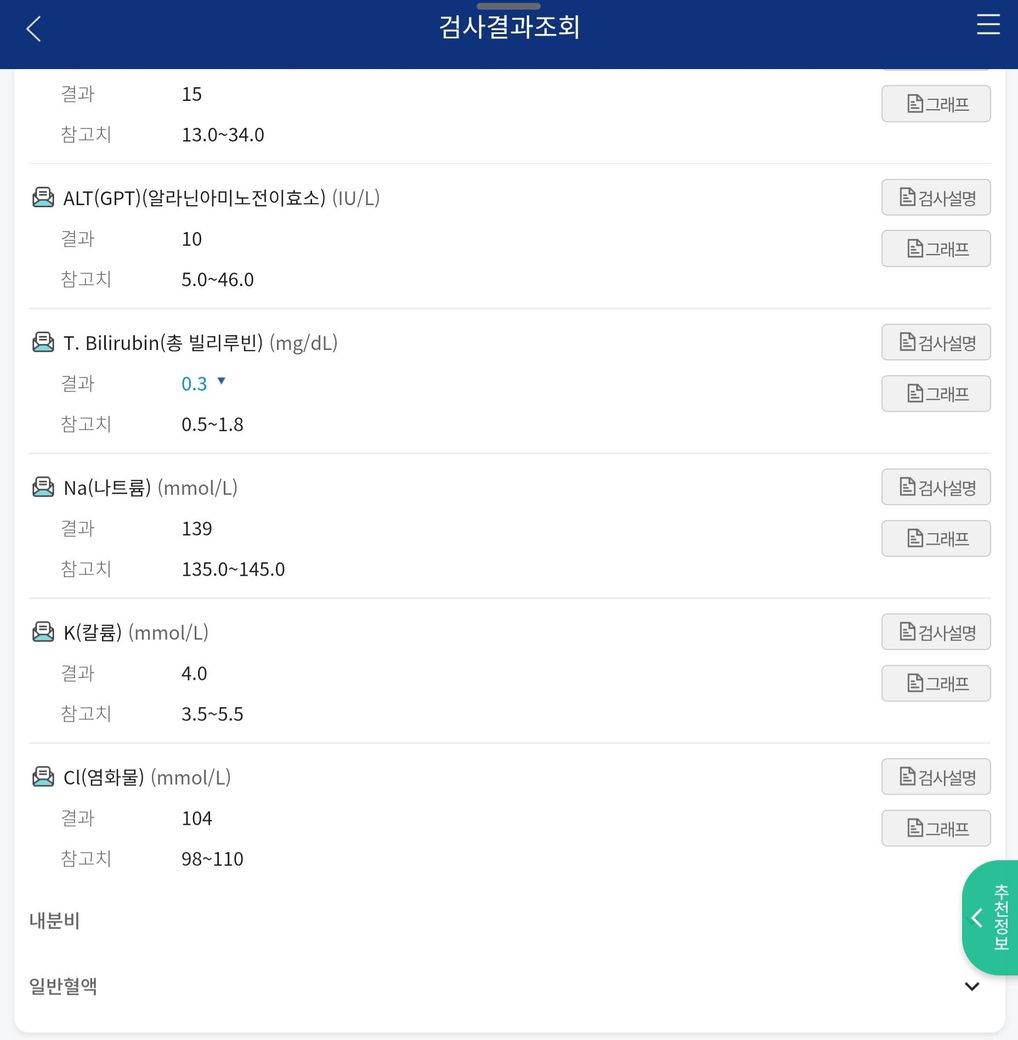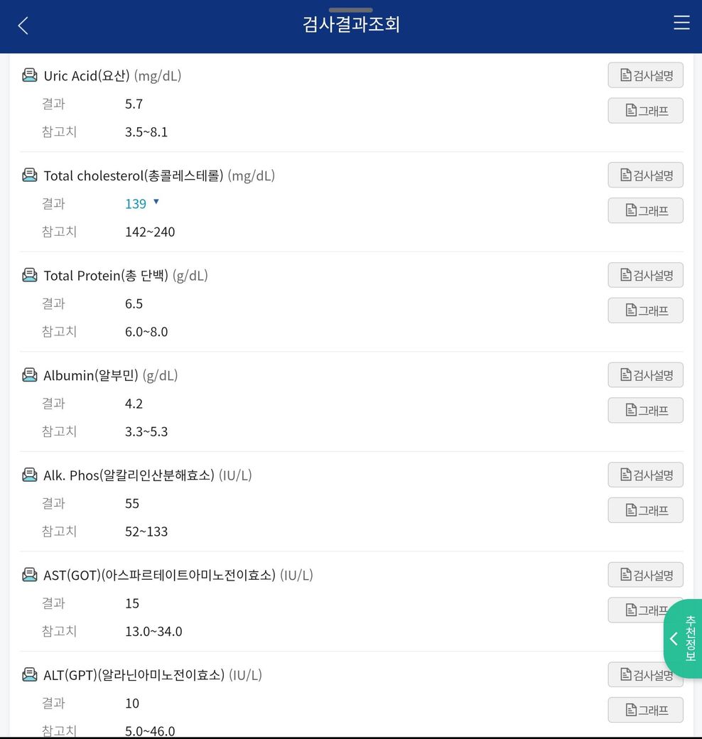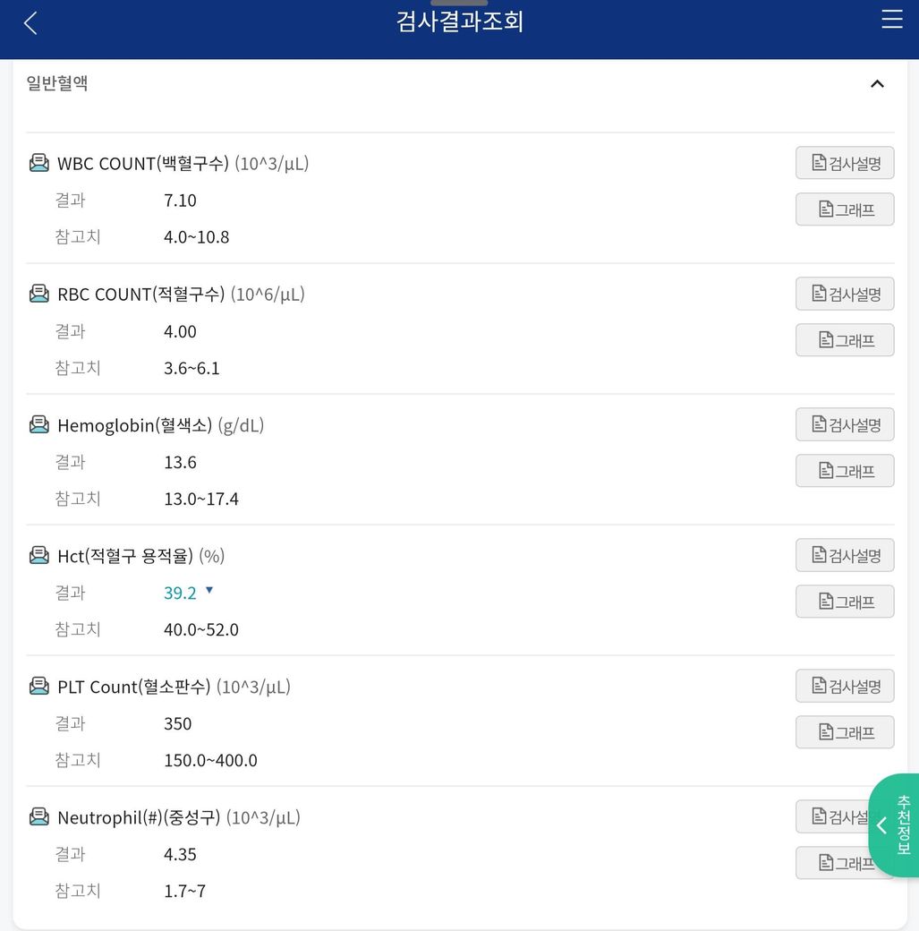 어제 피검사를 했습니다! 결과 내용을 알려주세요!