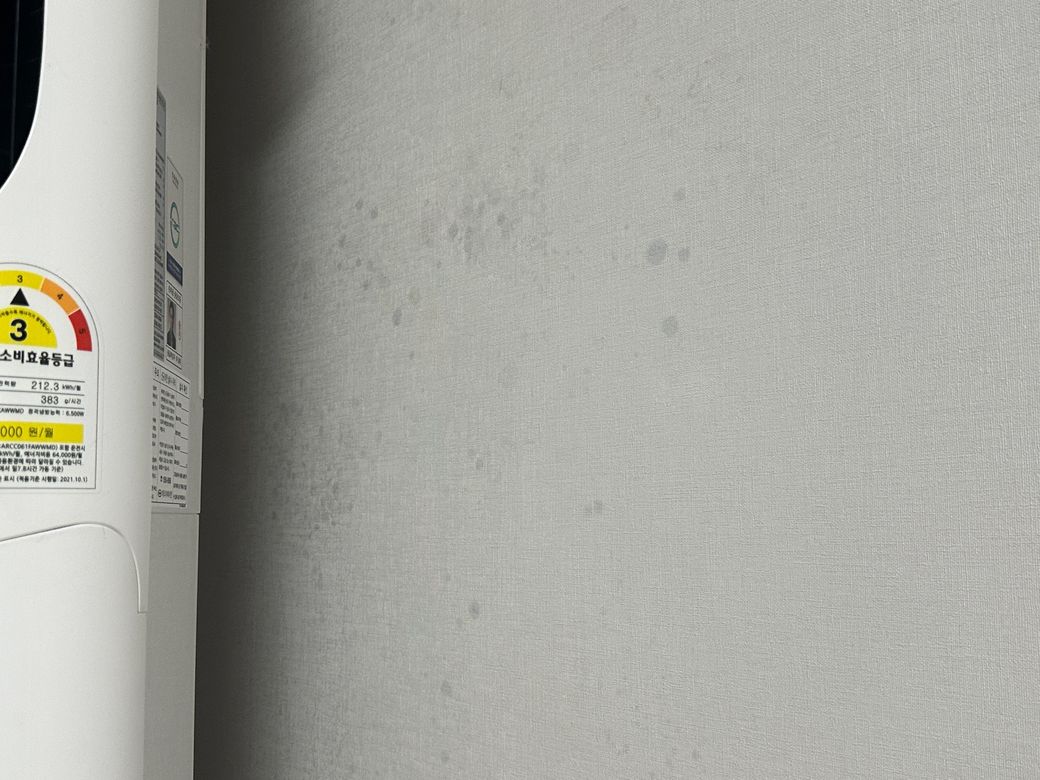 몇일전 에어컨 에러가 뜨면서 벽지가 이렇게 된걸 확인했습니다.