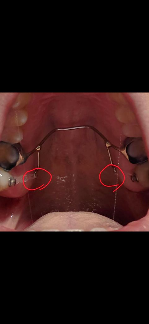 상악 제일 마지막 어금니 함입 목적으로 tpa 장치를 달았는데 사진에서 동그라미친 부분이 침 삼킬때마다 아래 혓바닥에 쓸려서 너무 아파서 도저히 침을 못삼키겠어요