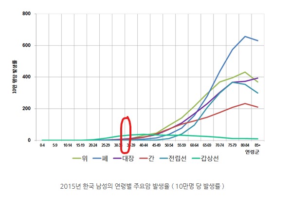 하지만 연령별 발생률을 본다면 빈도가 너무 낮아서 과연 검사를 하는게