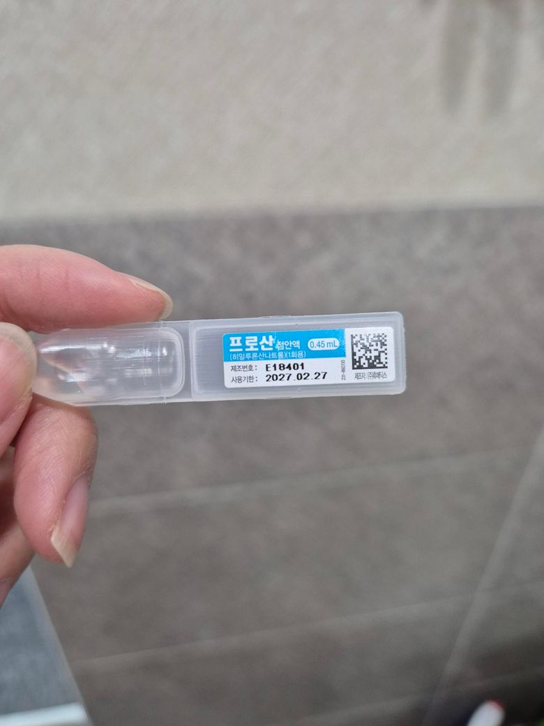 사진의 제품은 히알루론산나트륨 성분의 1회용 인공눈물입니다. 보존제가 없는 1회용 제형이라 일반적으로 콘택트렌즈 착용 중 사용은 가능합니다. 다만 제품 설명에 렌즈 사용 가능 여부가 명확히 적혀 있지 않다면, 안전하게는 렌즈를 뺀 뒤 점안하는 것이 가장 보수적인 방법입니다. 특히 소프트렌즈라면 큰 문제 없이 사용하는 경우가 많지만, 착용 중 반복 사용은 피하는 편이 좋습니다.