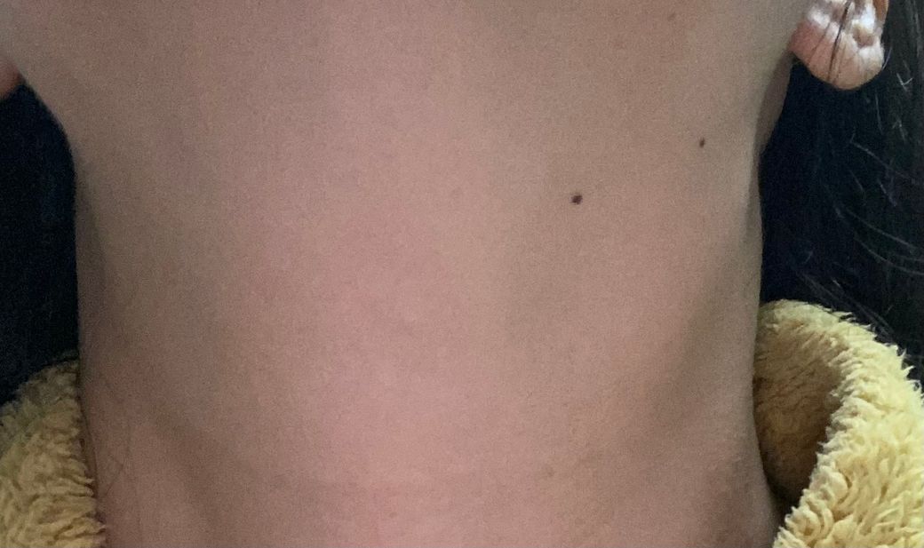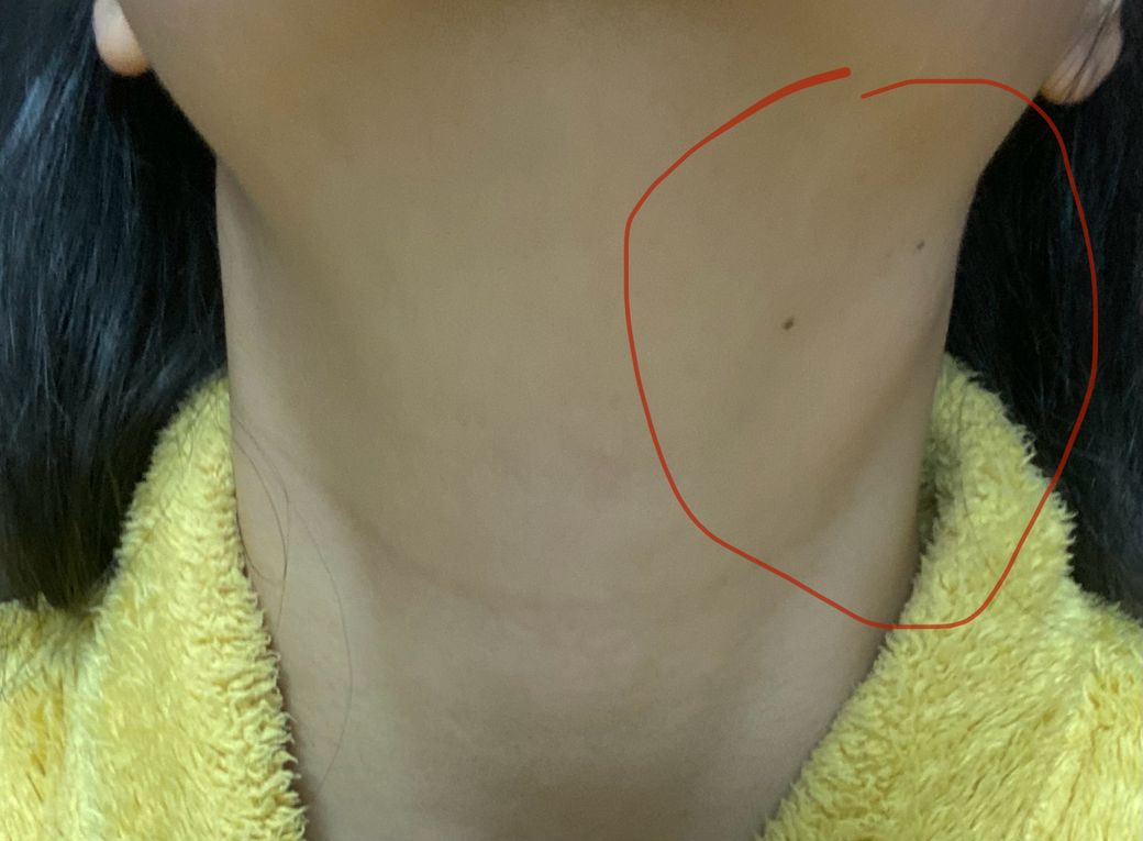두 번째 사진에서 임파선의 비대의 가능성이 생각되므로 인근 병원을 방문하여 경부 초음파 검사를 받아보시기 바랍니다.