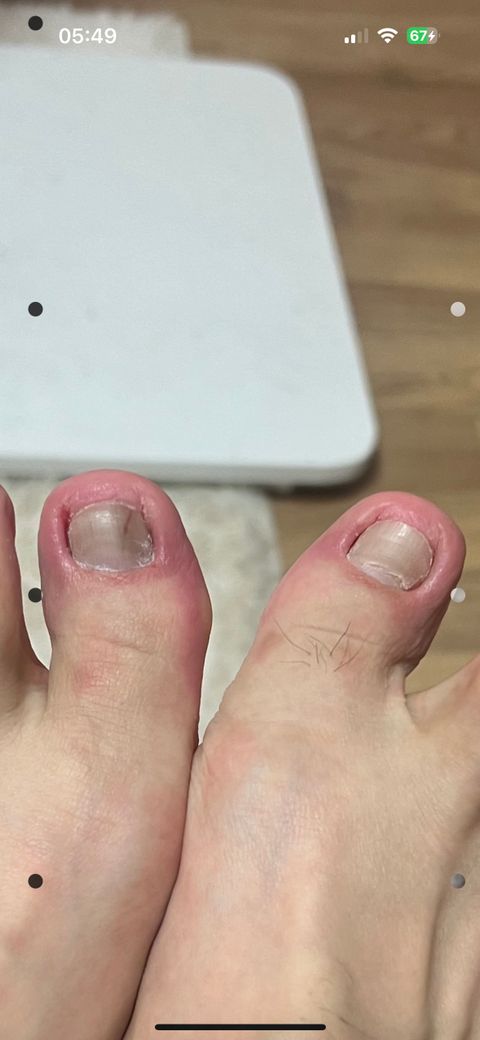 그리고 부딪히거나 밟힌적없다는데 왼쪽엄지발가락에 빨간 선?같은게 뭔지 모르겠습니다!!