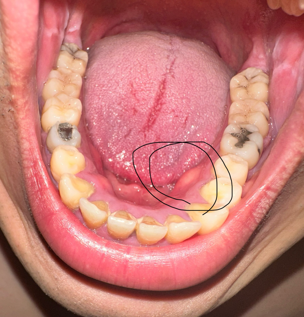 갑자기 생겨서 고통을 참고 혀로 꾹 누르면