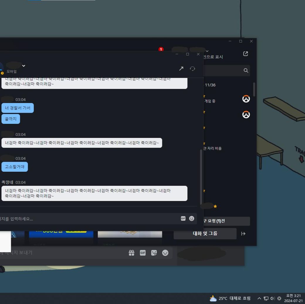 오버워치 게임 도중에 부모님 죽이겠다는 협박성 패드립을 먹었는데 고소 가능할까요?