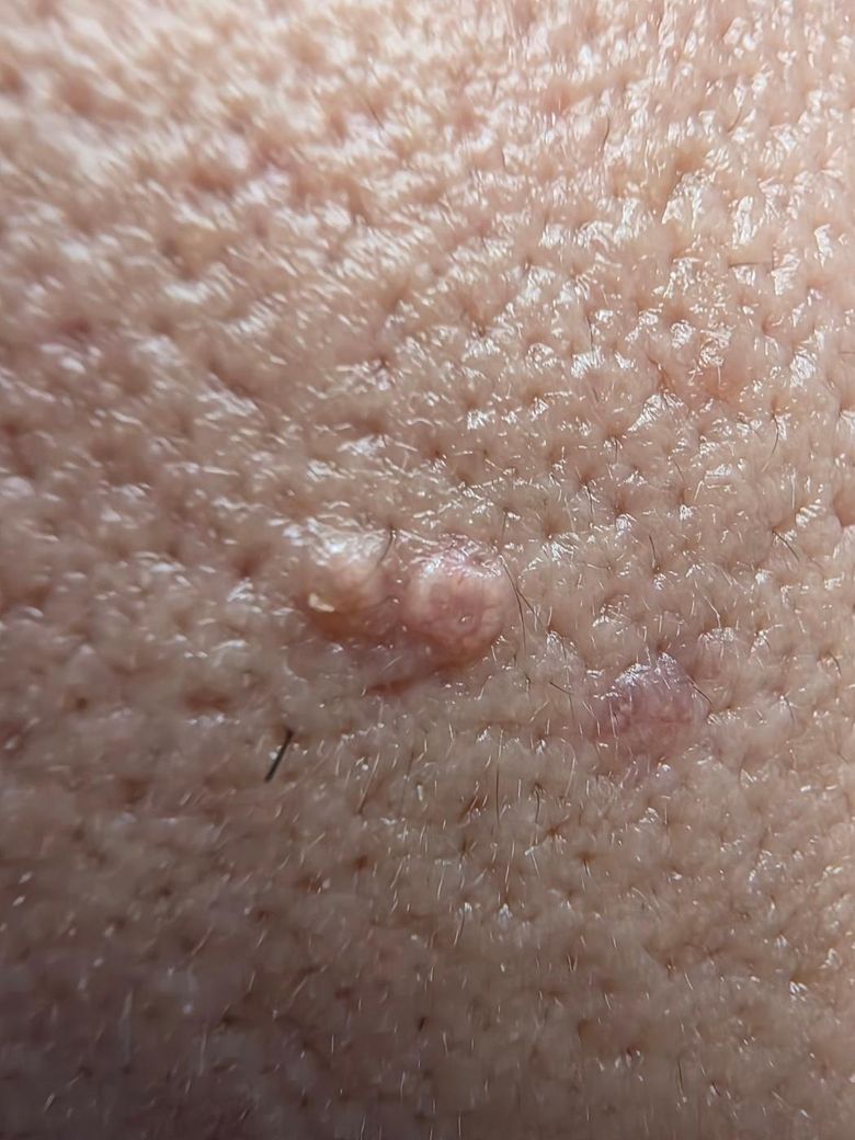 3. 사진 1(이마) 에 저 부분들도 평편사마귀로 보이나요? 추가적으로 생긴 것 같네요
