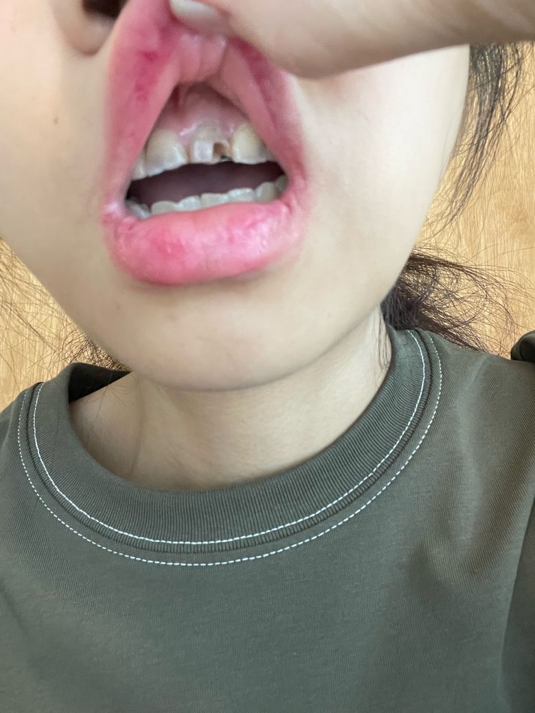 빵 먹다가 앞니가 깨졌어요