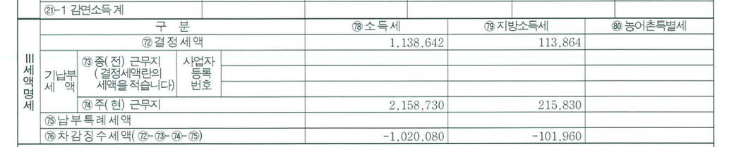 3개 회사중 2개 회사는 원천징수영수증의 결정세액이 0원으로 뜨는데, 한개의 회사는 첨부한 사진과 같이 뜹니다.