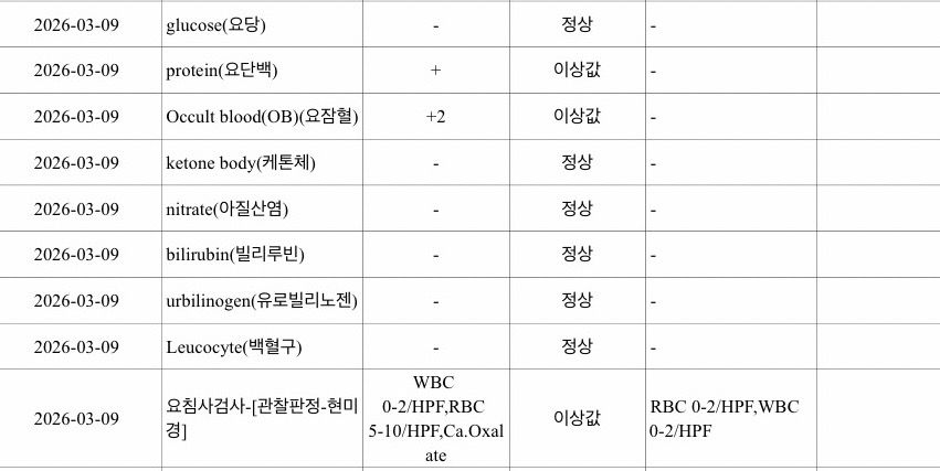 이러한 일시적 변화는 탈수, 운동, 스트레스, 미세한 요로 자극 등에서도 발생할 수 있으며, 젊은 연령에서는 기립성 단백뇨처럼 아침 소변에서만 단백이 검출되는 경우도 드물지 않습니다. 재검에서 완전히 정상이고 특별한 증상이 없다면 임상적으로 의미 있는 신장 질환 가능성은 낮은 편으로 판단합니다.
