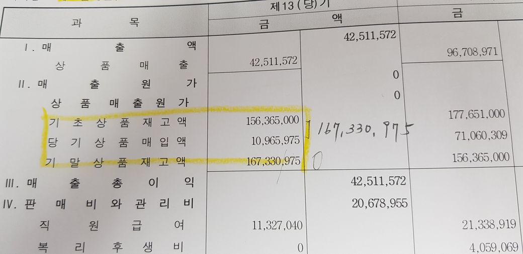 업체와 피드백하시면서 매출을 어느정도로 조정할지 이야기를 해보시고, 그에 맞게 기말재고를 조정하면 될 것으로 보여집니다. 정해진 것은 없으니 너무 부담갖지 않으셔도 됩니다. 부가가치세, 종합소득세의 세금과 기말재고는 반비례 관계입니다.