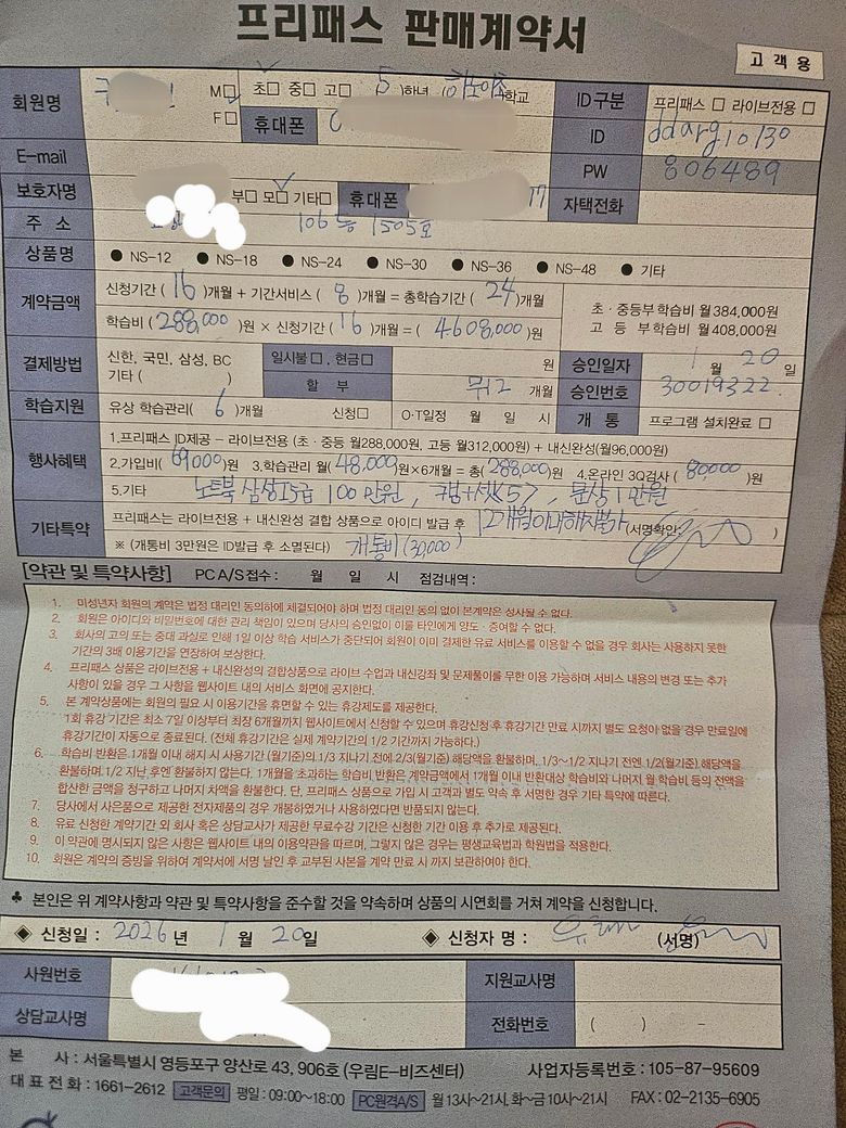 계약서상 특약에 취소불가, 위약금 조항이 기재되어 있더라도 이는 청약철회권을 제한하는 범위 내에서는 무효로 다툴 수 있습니다. 회사가 개통, 아이디 발급 등을 이유로 철회를 거부하는 경우에도, 실질적 이용 여부와 소비자 귀책성을 기준으로 판단됩니다. 미개봉 상태라는 점은 소비자에게 유리한 요소입니다.대응 및 유의사항