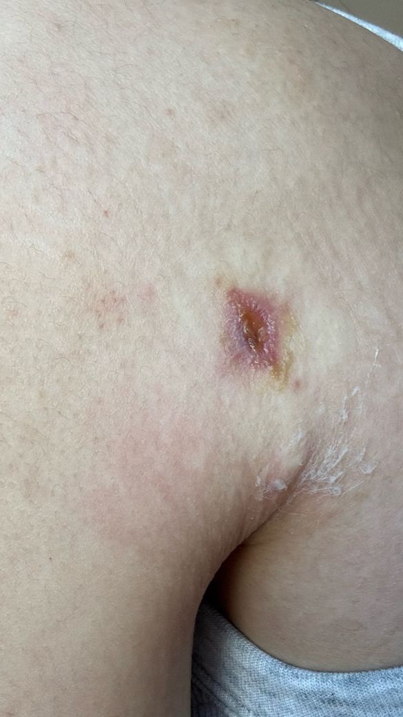 잘 회복되고 있는 상태로 보입니다. 항생제 연고 발라주시고 체액이 묻어나오지 않을때까지 드레싱 용품으로 덮어두시는게 적절하겠습니다.