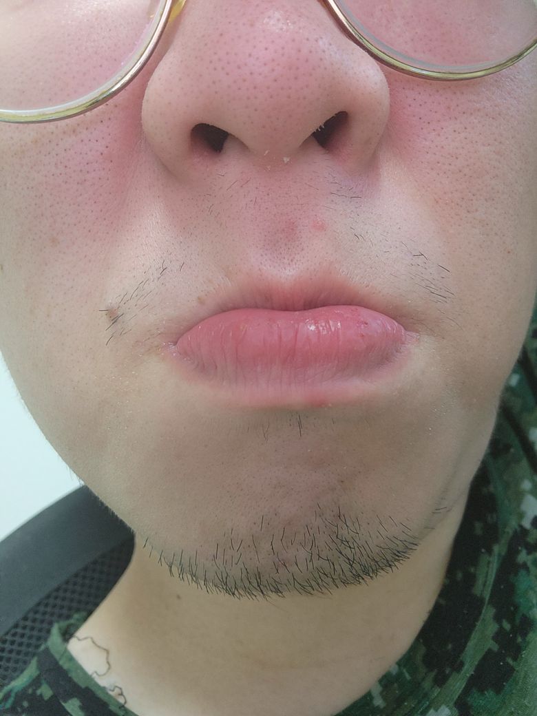 헤르페스처럼 보이지는 않습니다. 모낭염으로 생각되고 항생제 연고 바르면서 기다려 보셔도 좋겠습니다.