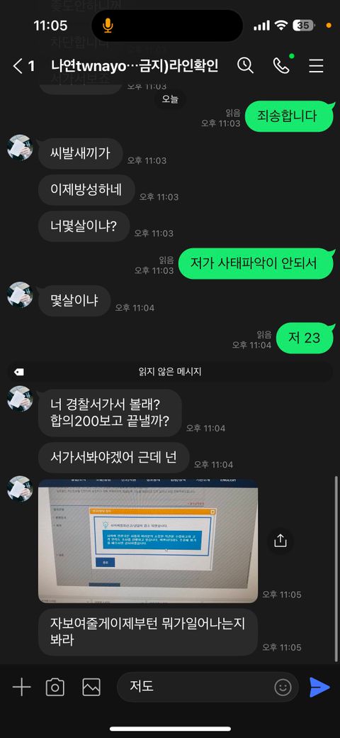 트위터에서 라인친구추가하면 야한걸 살수있가고 해서 친구추가하고 연락했는 데 협박하면서 경찰에신고한다고 욕하면서 돈을 내놓으라고 하는 데 어떻게할까요?