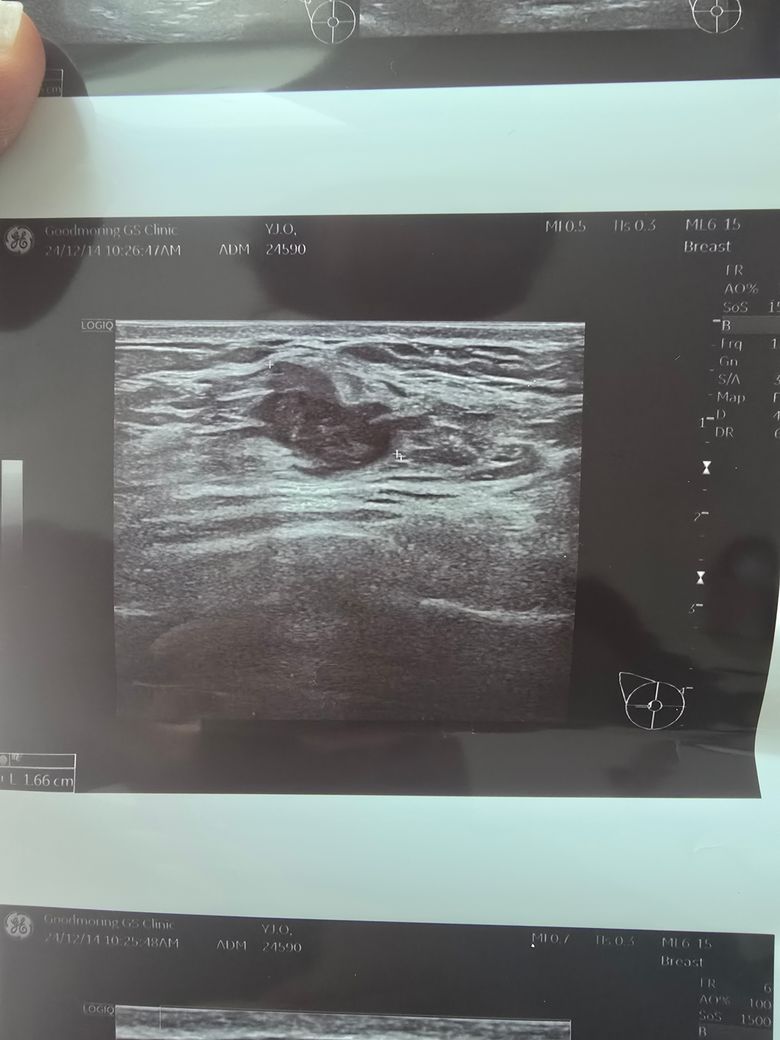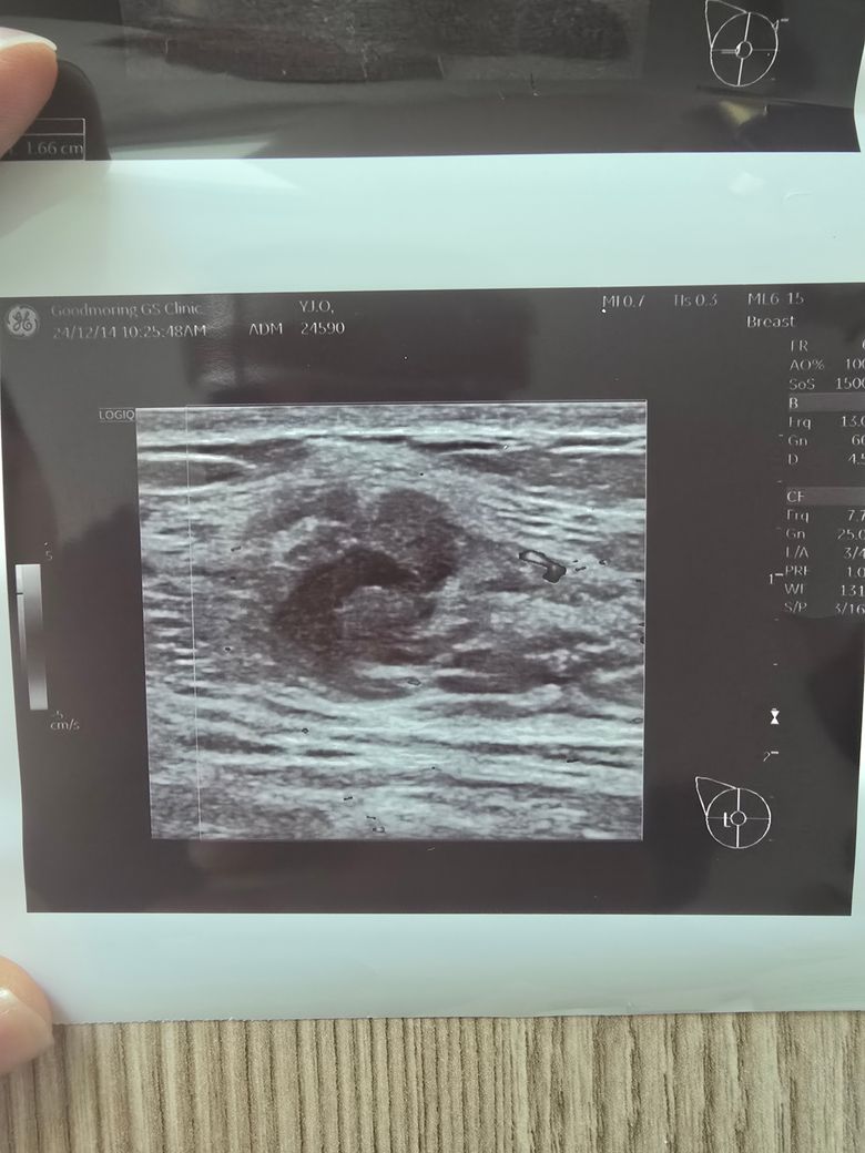 가슴부위 9시방향에 몽울잡혀 병원 방문, 초음파사진