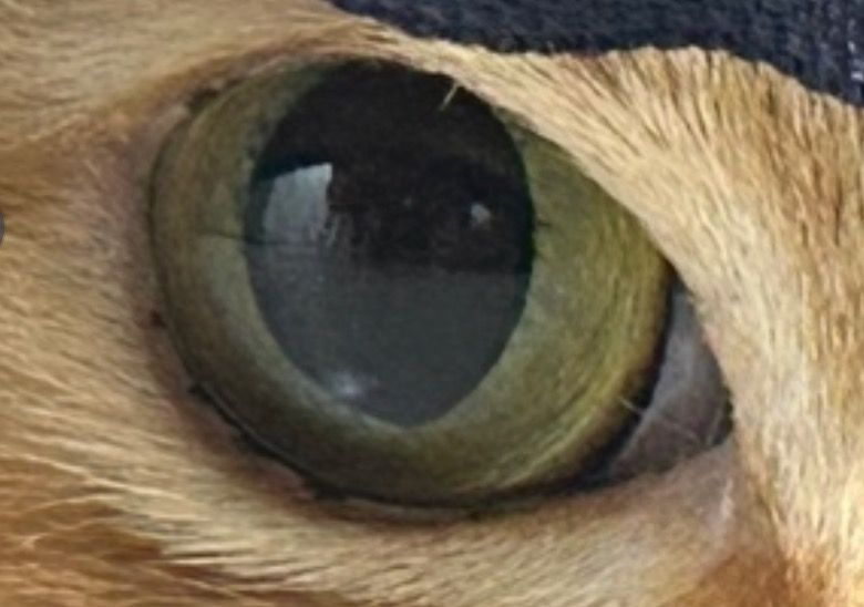 고양이 눈에 여러 개의 점이 발견되었습니다.