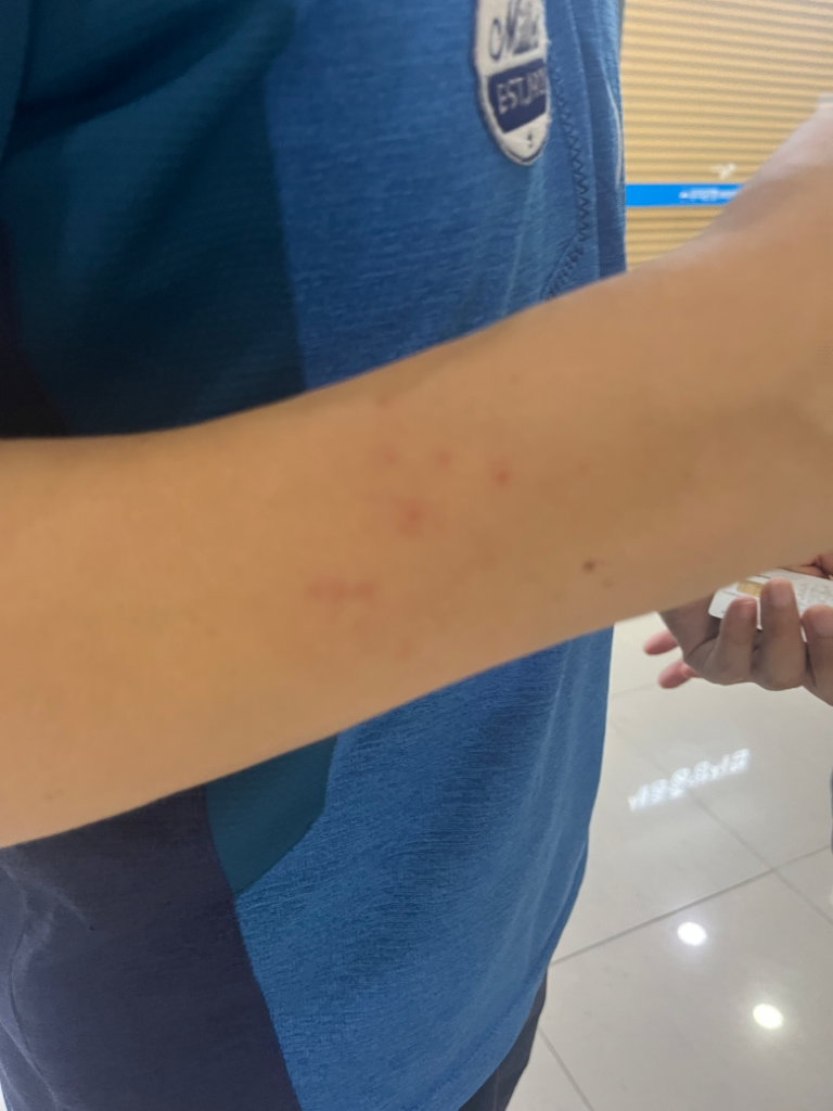 사진이 흐릿한데, 벌레에 물렸거나 일시적인 알러지성 두드러기 처럼 보입니다.