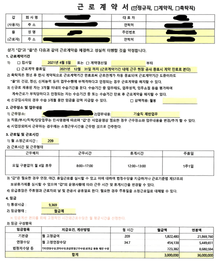 근무시간도 안 맞는거 같고 연봉에 연차수당등 기타금액을 미리 적용시켜놓는것도 이해가 안되어 전문가분들에게 질의를 해봅니다 ㅜㅜ