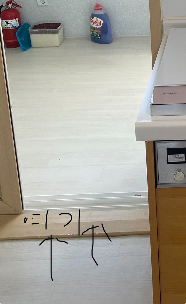 방에서 거실쪽으로 나가는쪽 미닫이문 밑에쪽인데