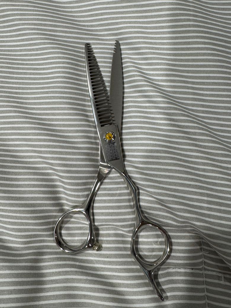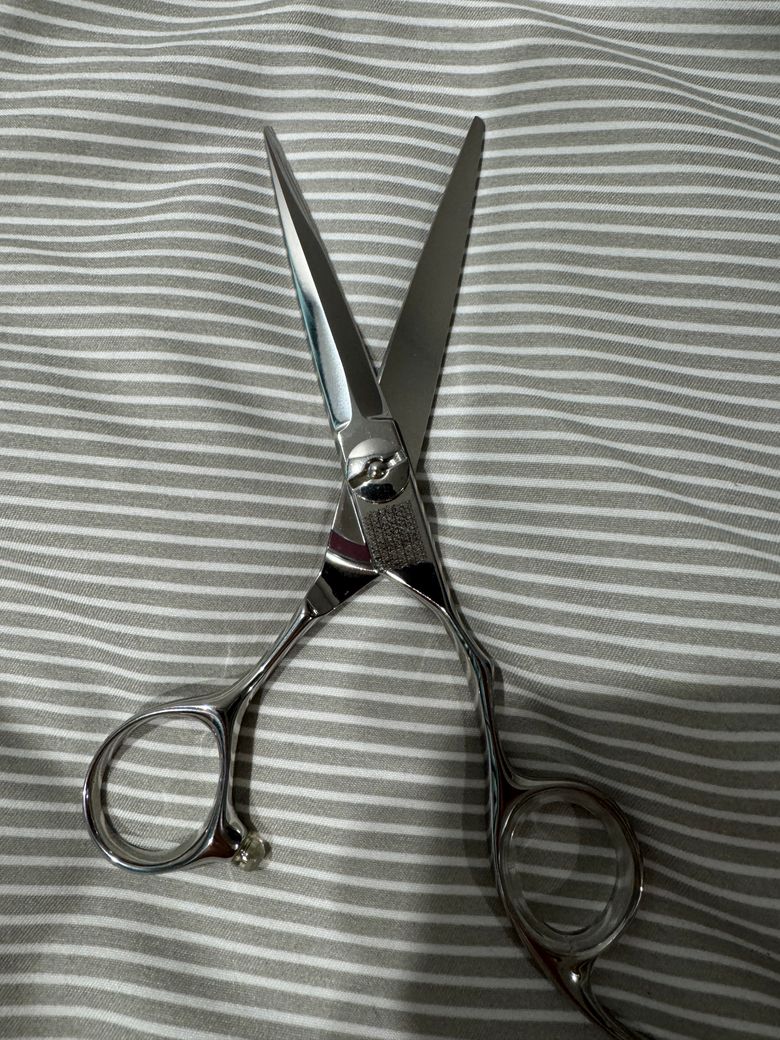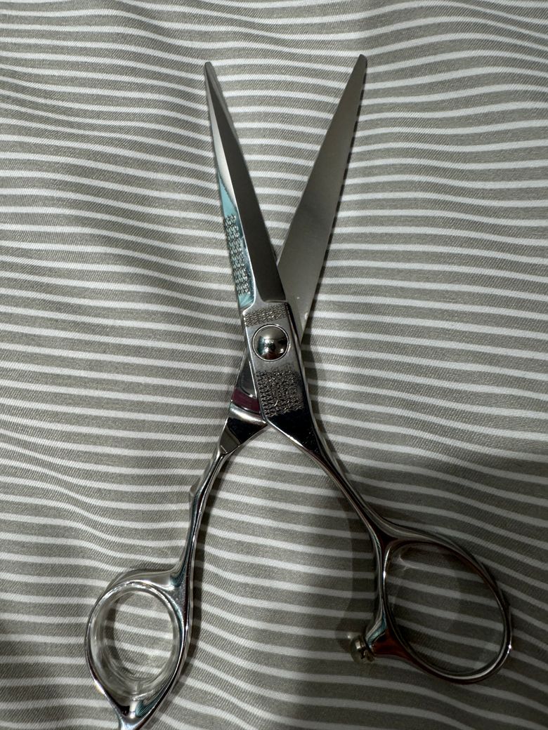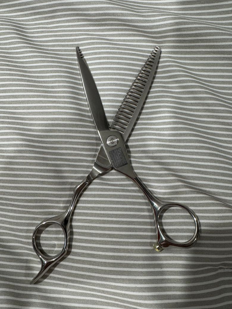 안녕하세요! 당근에서 미용가위를 샀는데 계약문제때문에 가위브랜드는 일부러 레이저각인으로 지웠다고합니다.