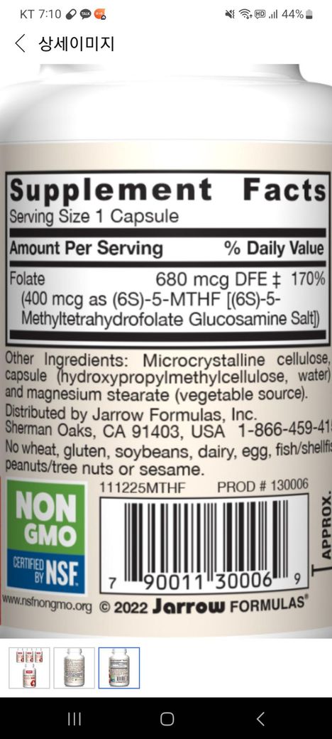 일반적으로 엽산으로 겹치는 용량은 400mcg 드신다고 보시면 됩니다. 활성형 엽산이네요. 다만 외국 제품의 경우에는 품질이 믿을 수 없는 경우들이 있습니다. 이 성분은 국내에도 들어와 있고 가격도 비싸지 않아 국내 제품을 드시는 것을 추천드립니다.