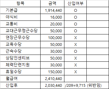 1. 상근직 (주5일 40시간근무 기준)