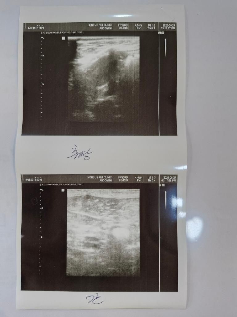 강아지 담낭좀 한번 봐주시면 감사하겠습니다 우루사를 먹여도 될 수준인지 봐주세요
