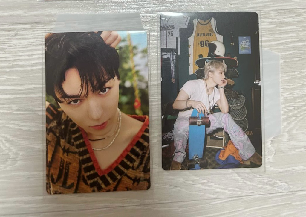 오른쪽는 버논 헤븐 포토카드이고 왼쪽은 디노 헤븐 미니카드 인 것 같습니당 ^3^ 스캔이 아니라면 아마 공굿일 것 같습니닷