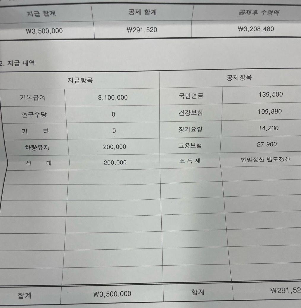 근로계약서 작성 후 실 지급된 급여가 계약된 연봉과 차이가 있어 정상지급된게 맞는지 확인 부탁 드립니다. (첨부파일 참조)