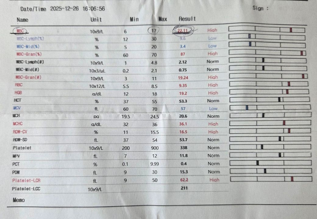 11월 25일 부터 12월9일까지 잦은 구토와 설사 마지막에는 혈변 까지 보더라구요 (기력이 많이 떨어지는거같진 않았습니다.) 그래서 병원가서 약만처방 받고 5일 먹이고 나니 괜찮다가 12월26일에 갑자기 구토와 혈변을 보더라구요 그래서 병원 방문해서 간단한 피검사만 했는데 이것만 해도 괜찮을까요?? 간기능만 문제있는거같다고 큰문제는 아닌거같다고 말씀해주시는데 주사와 약처방만 받고왔는데 괜찮은건가요?? 상태가 많이 안좋은건가요?? (병원갔다온후 밥은 잘먹었습니다)