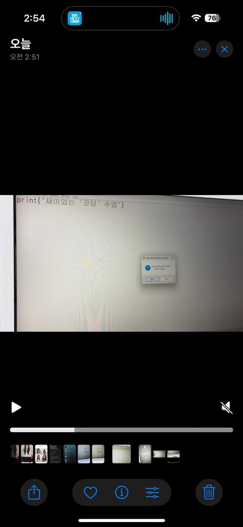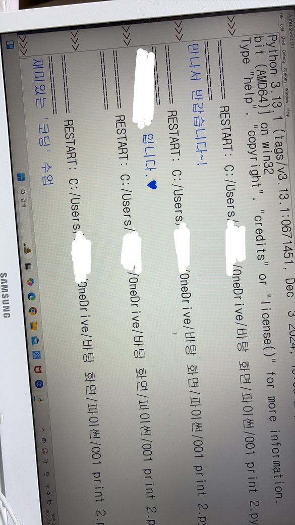 print (‘재미있는 코딩수업’) 을 치고