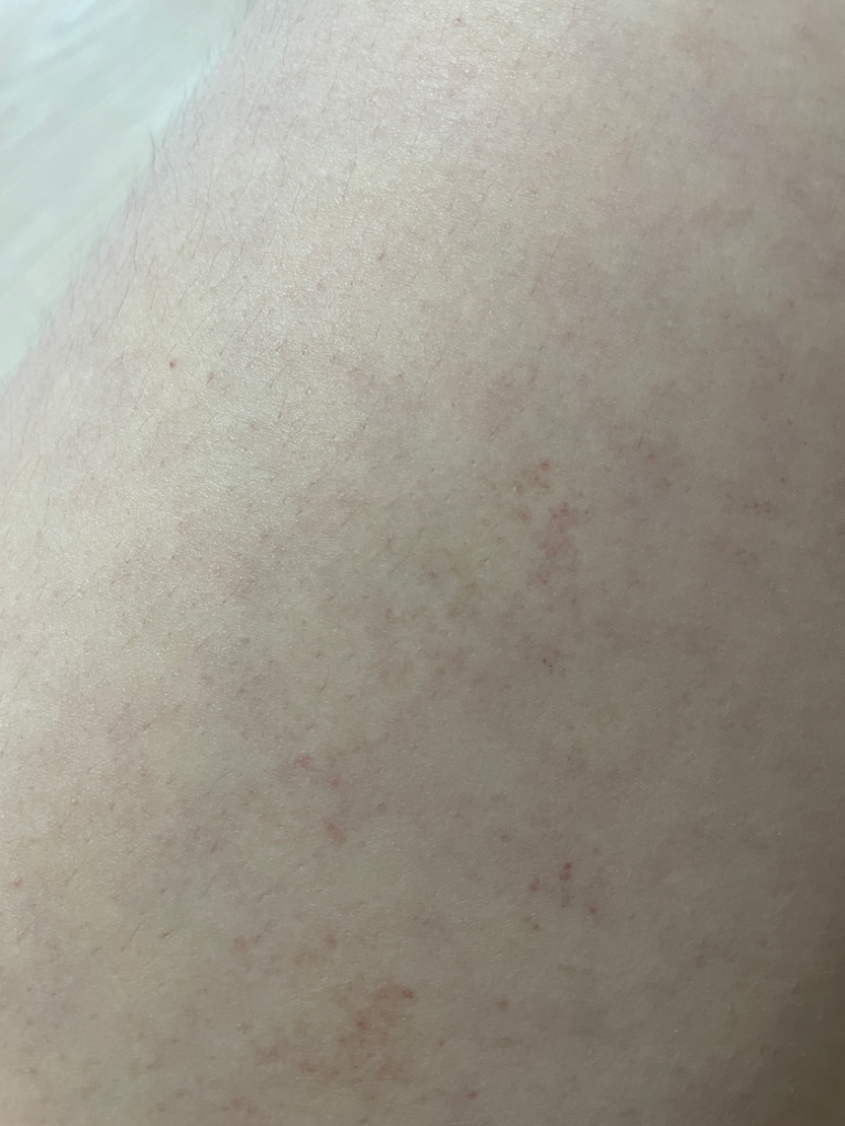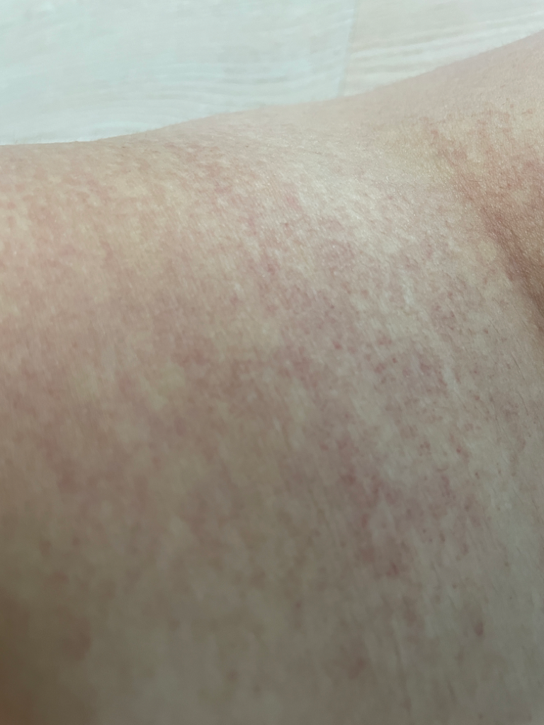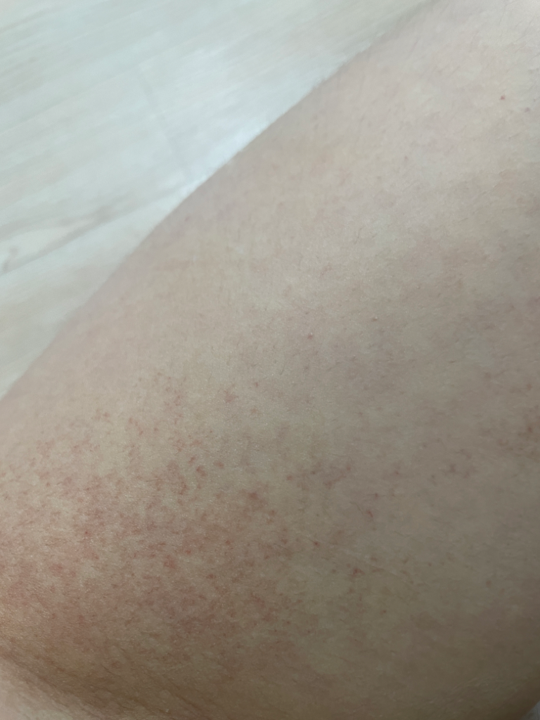 발진이 2주를 넘어갔는데도 호전이 되지 않는다면 가까운 피부과를 방문하시는걸 권장드립니다.