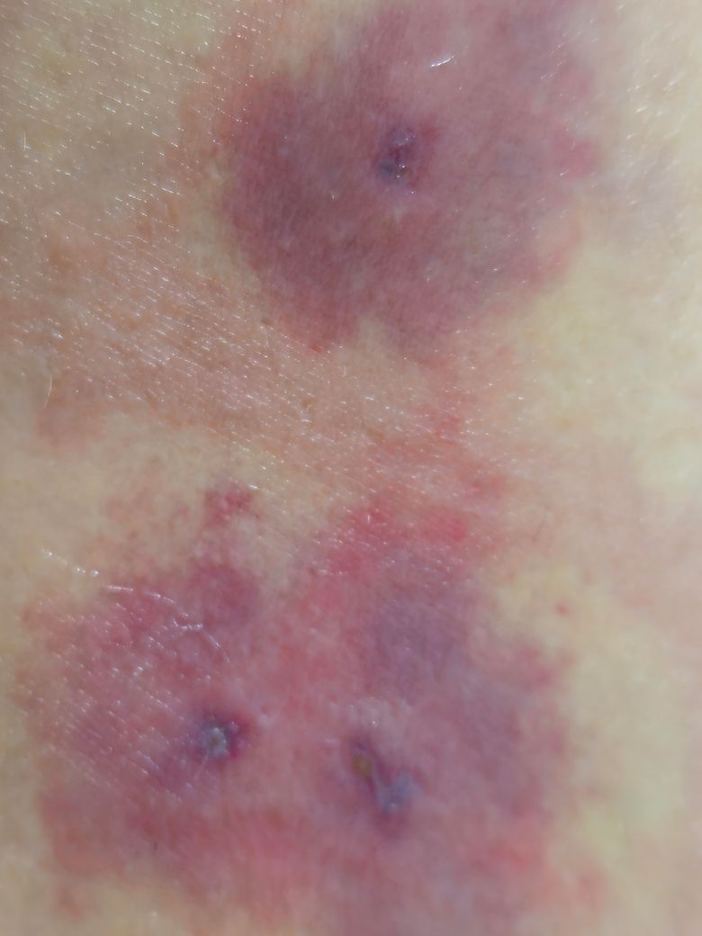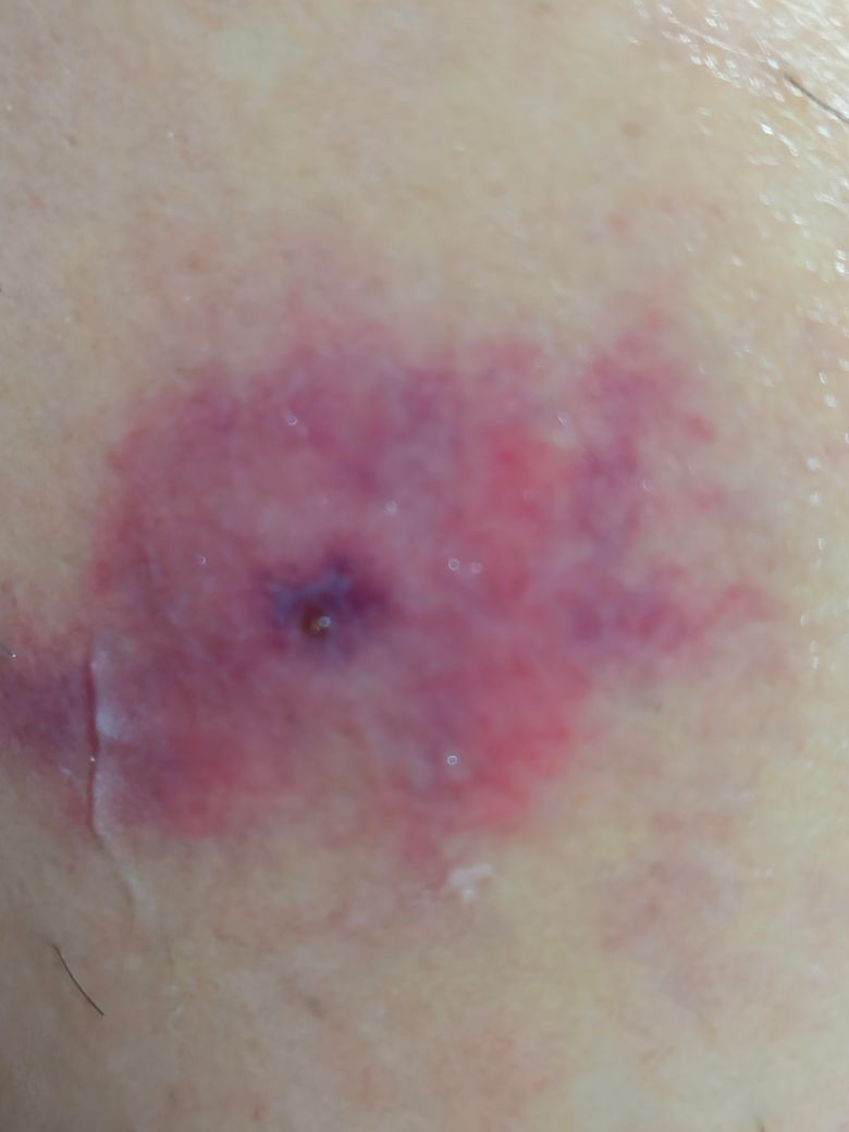 병변 사진을 통해서 구체적으로 무엇에 물려서 발생한 피부 발진 증상인지 알 수 없는 것이 맞습니다. 사진의 소견을 통해서 보았을 때에는 진드기의 머리가 박혀있다거나 하는 등의 소견이 크게 있어 보이거나 하지는 않습니다.