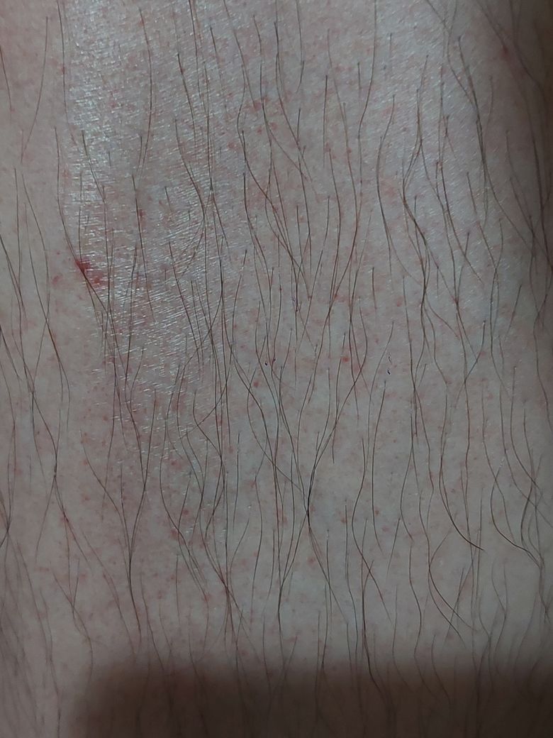 종아리 쪽에 일광화상을 입었습니다. 일요일 오후에 화상을 알았고, 차가운 물하고 알로에를 사용했습니다. 알로에는 하루 2-3번 정도 오늘까지 발라주었고, 오늘 화요일 오전 쯤 되니까 어느 정도 빨간 피부는 가라앉았습니다. 주로 종아리 앞쪽으로 햇빛을 받아 앞쪽은 아직 좀 빨간 상태입니다. 가렵고, 피부가 벗겨지는 건 없으며, 물집이나 수포도 없는 상태입니다. 다만 작은 붉은 반점들이 보입니다.