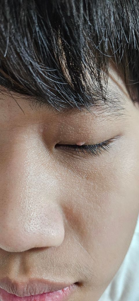 사진이 잘 보이지는 않지만 편평 사마귀 아닐까 싶네요. 눈꺼풀 위쪽이라서 피부과에 가보시는 것이 좋을 것 같습니다.
