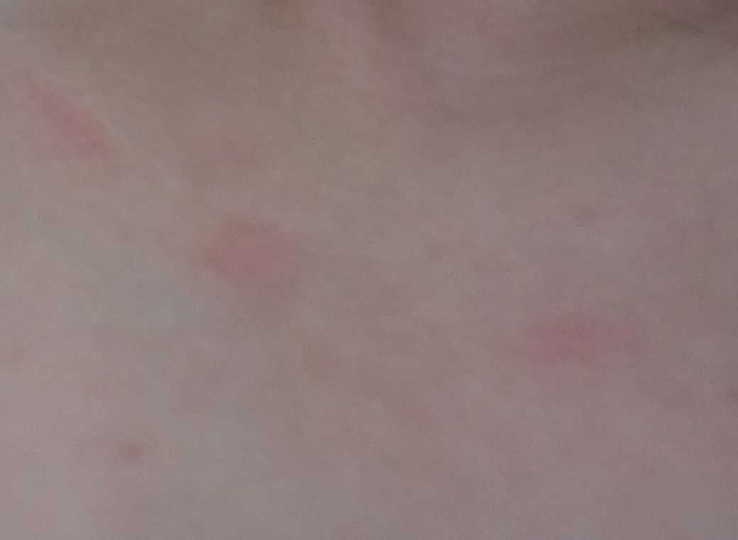 목 아래쪽 부분에 빨간 자국이 3개 생겼어요. 이유는 모르겠고 따갑거나 그런 느낌은 없어요..아유가 뭔가요? 위험한건지...
